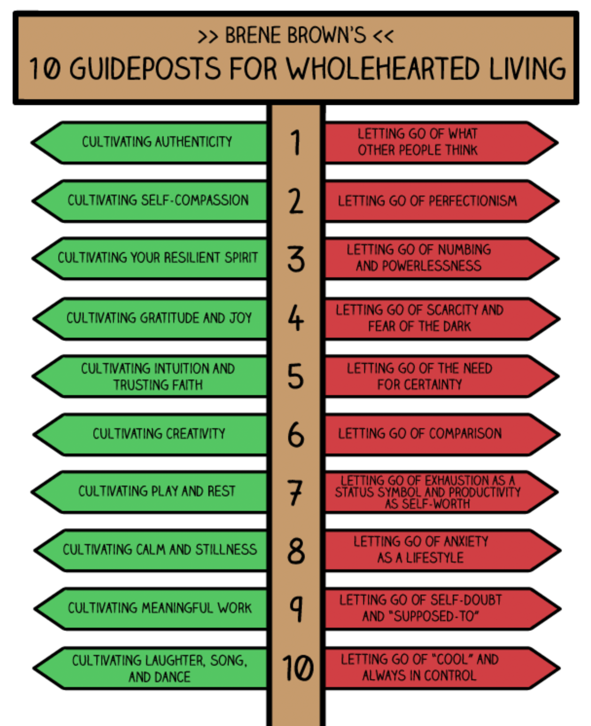In my latest reel on Instagram, I shared Brene Brown's “Wholehearted Signposts”.